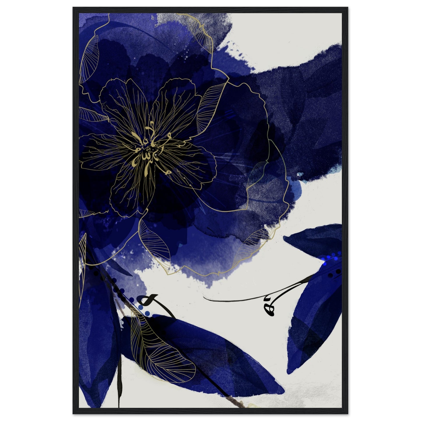 Blue Florals I Premium Matte Paper Wooden Framed Poster