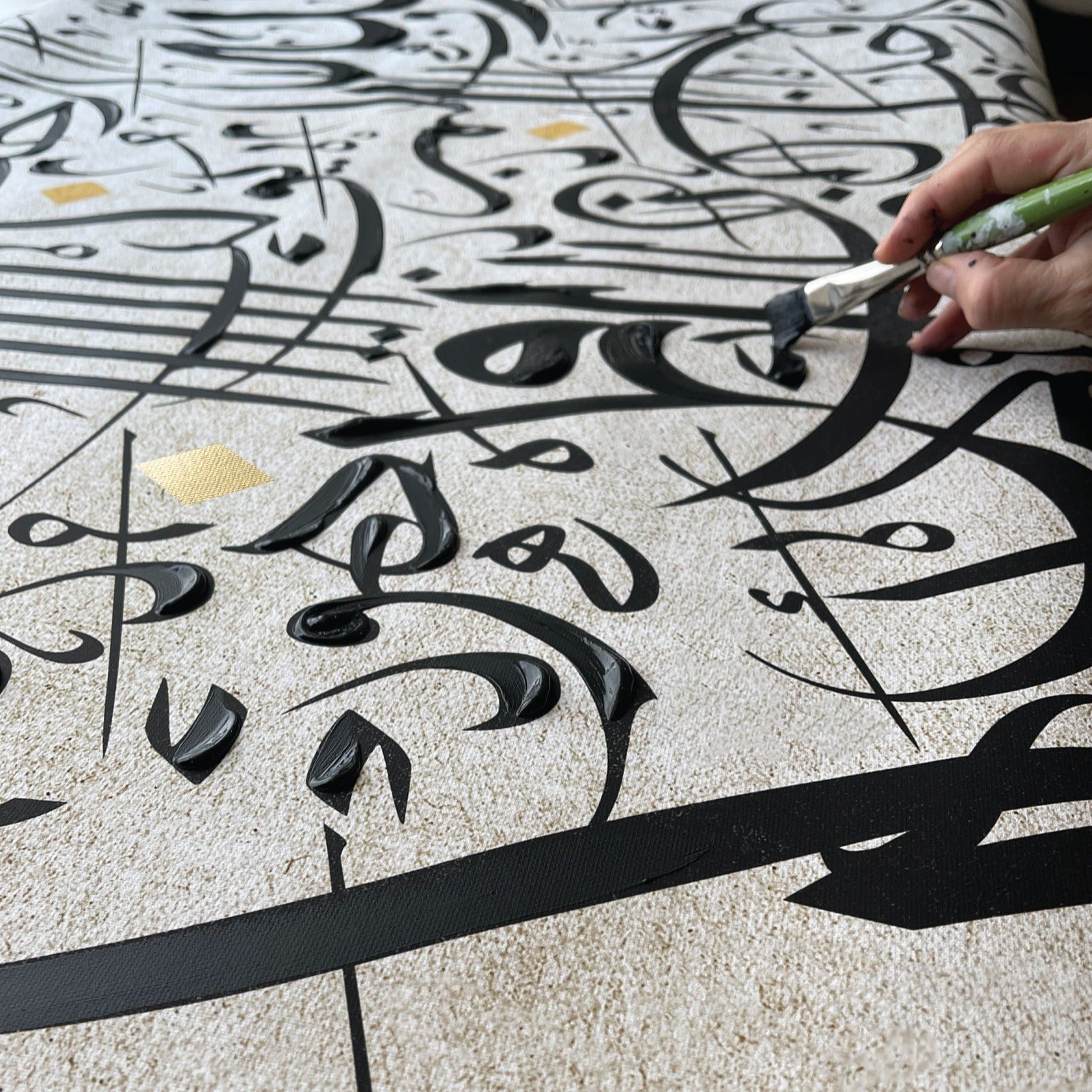 Helen Abbas explores the intricacies of contemporary Arabic calligraphy against a backdrop of vintage shades and texture.