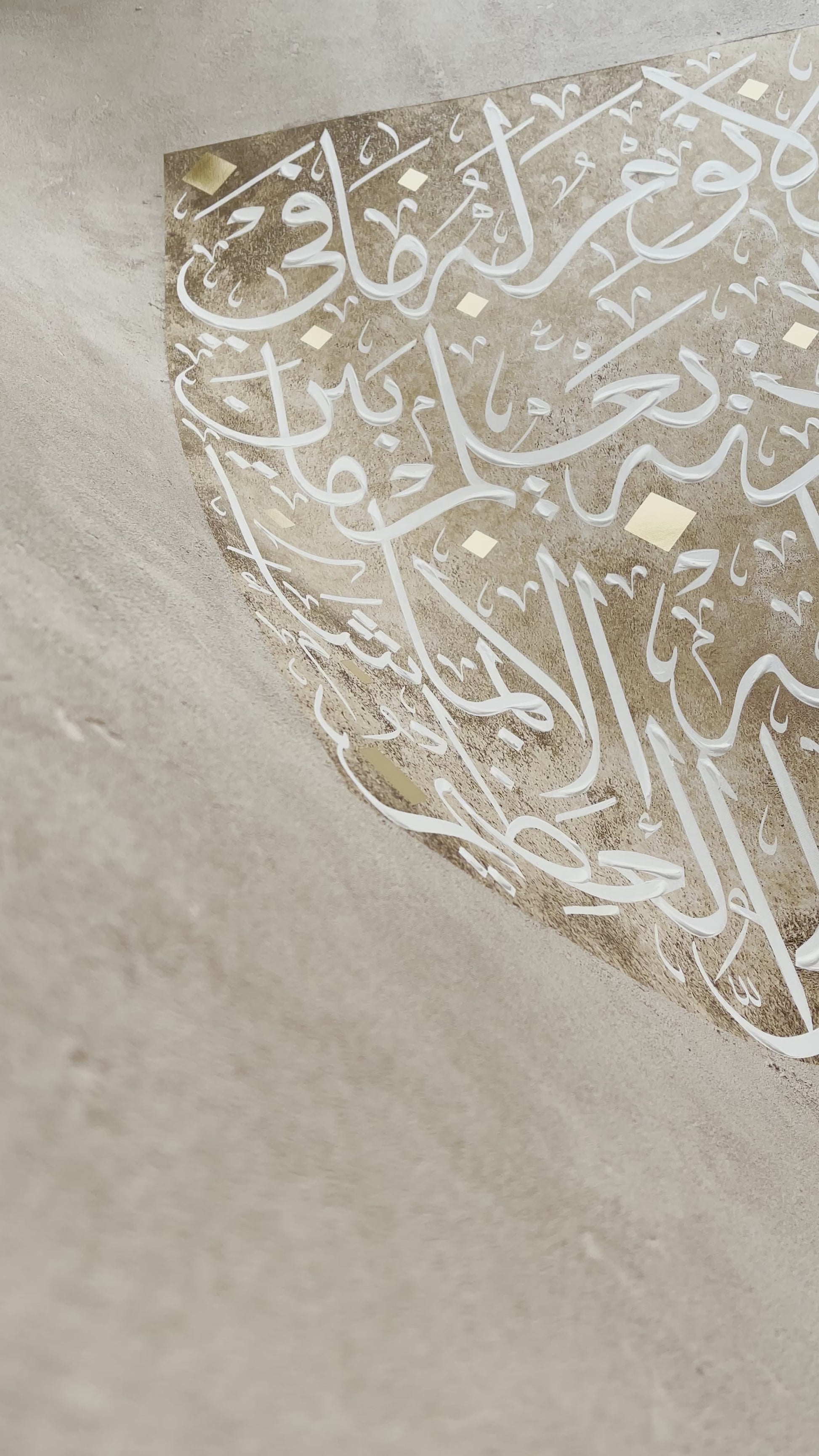 Hand painted raised 3D Calligraphy on digital printed background with a hand applied sand textures.